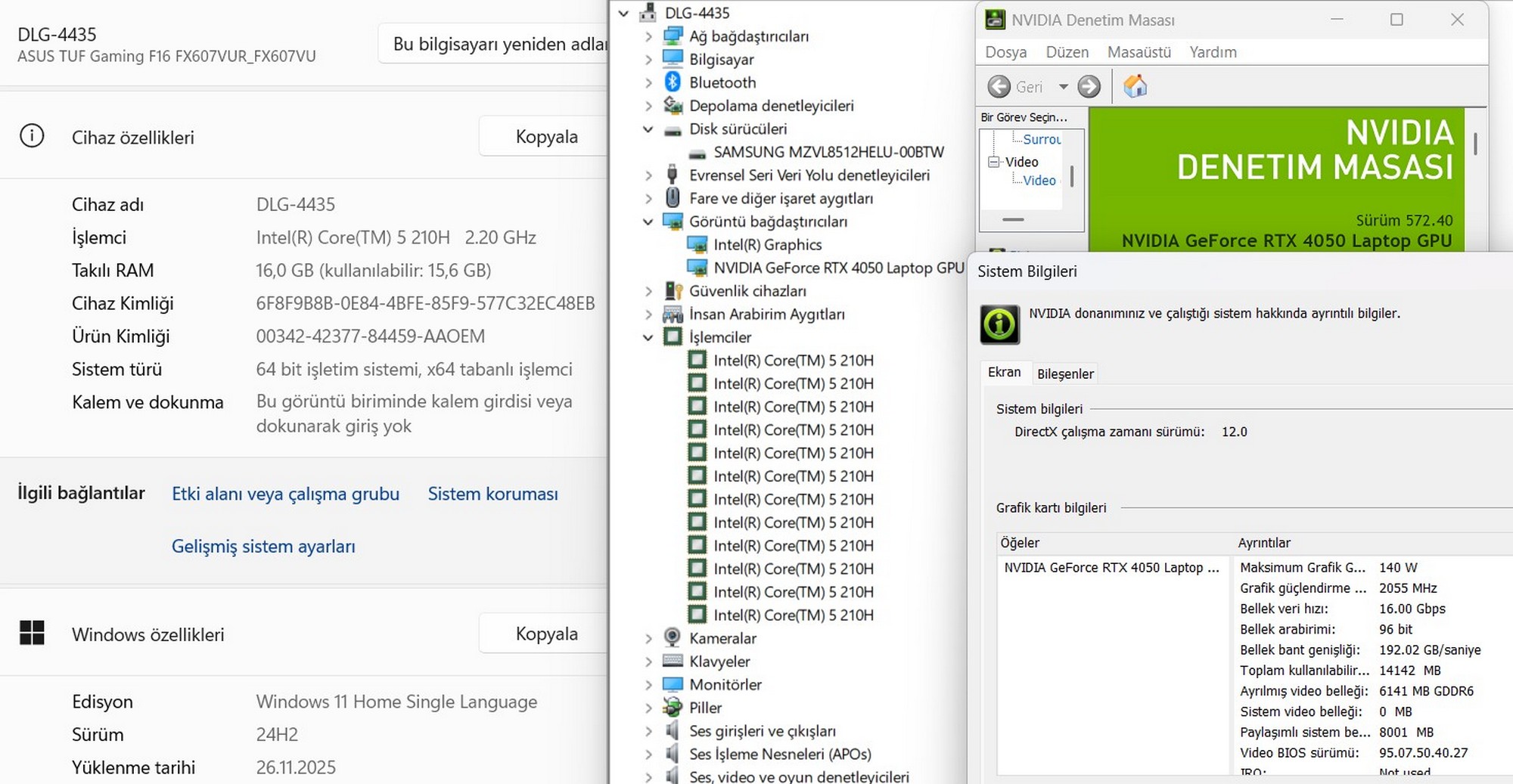 Ekran Kartı: NVIDIA GeForce RTX 4050 6 GB GDDR6