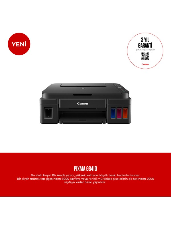 Canon Pixma G3410 Wi-Fi + Tarayıcı + Fotokopi Renkli Çok Fonksiyonlu Tanklı Yazıcı