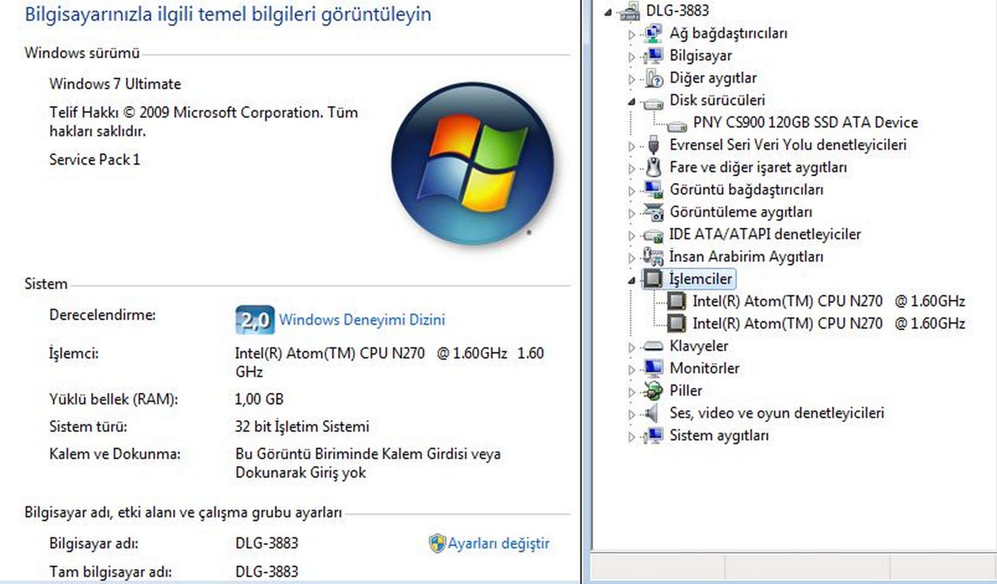 İşlemci: Intel Atom N270