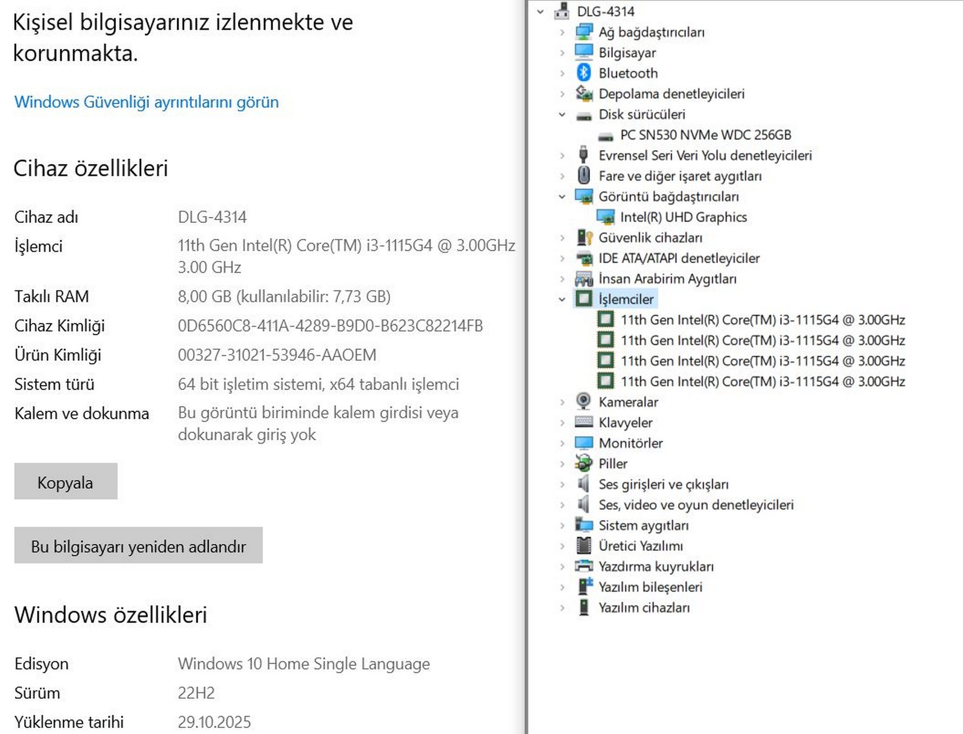 İşletim Sistemi Windows 10 Home