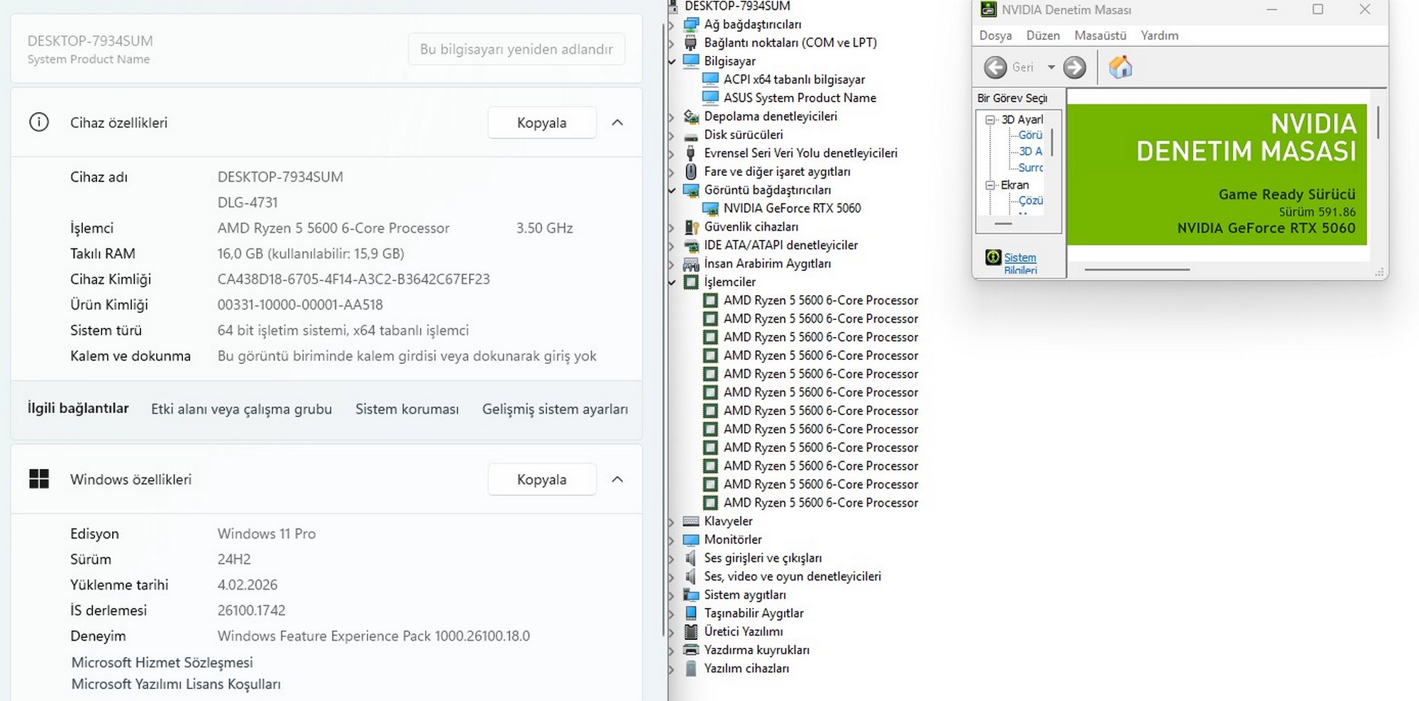 Dolgun Teknoloji 4731 AMD Ryzen 5 5600 16GB DDR4 1TB RTX5060 8GB W11 Pro Oyuncu Kasası
