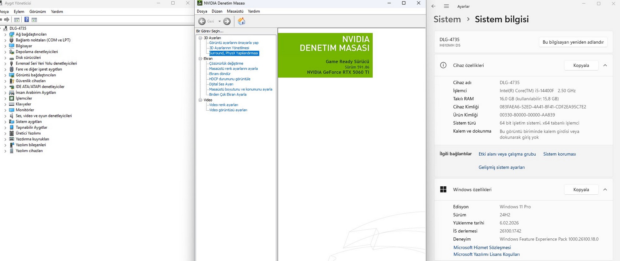 Dolgun Teknoloji 4735 i5-14400F 16GB 1TB RTX5060Ti 16GB W11 OEM Oyuncu Kasası