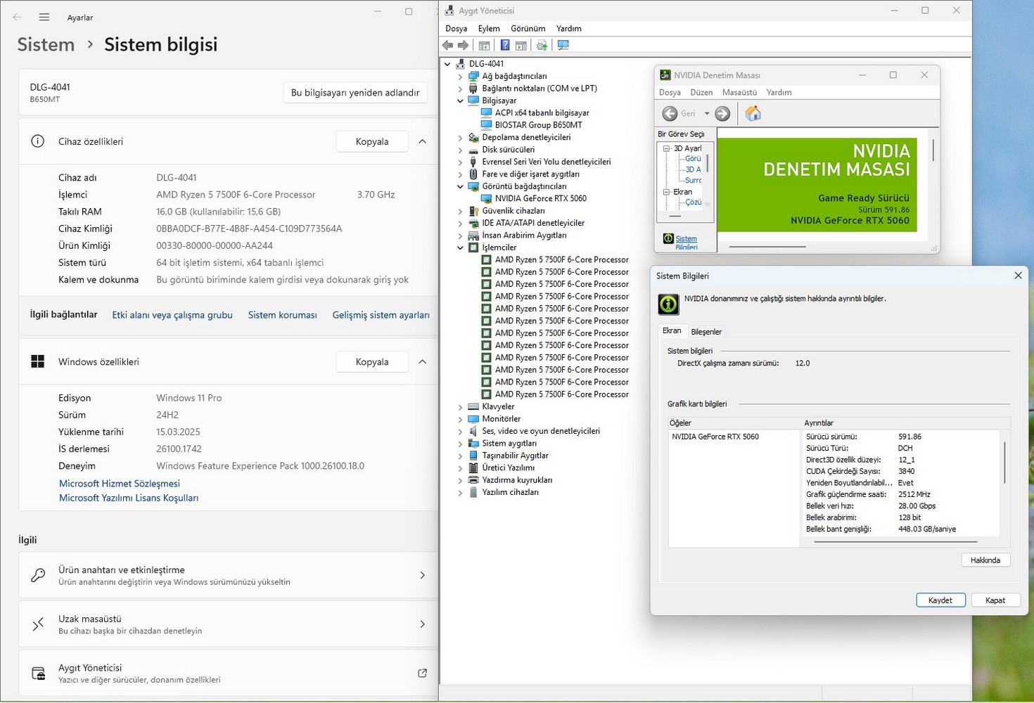 Dolgun Teknoloji 4741 R5-7500F 16GB DDR5 1TB RTX5060 8GB W11 OEM Oyuncu Kasası