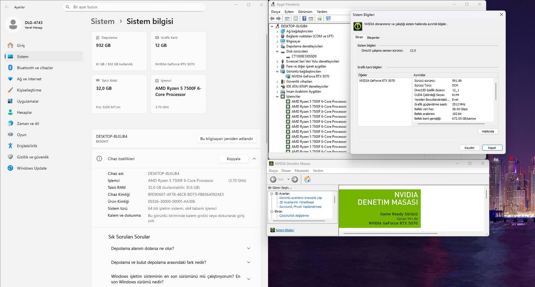 Dolgun Teknoloji 4743 R5-7500F 32GB DDR5 1TB RTX5070 12GB OEM Bilgisayar