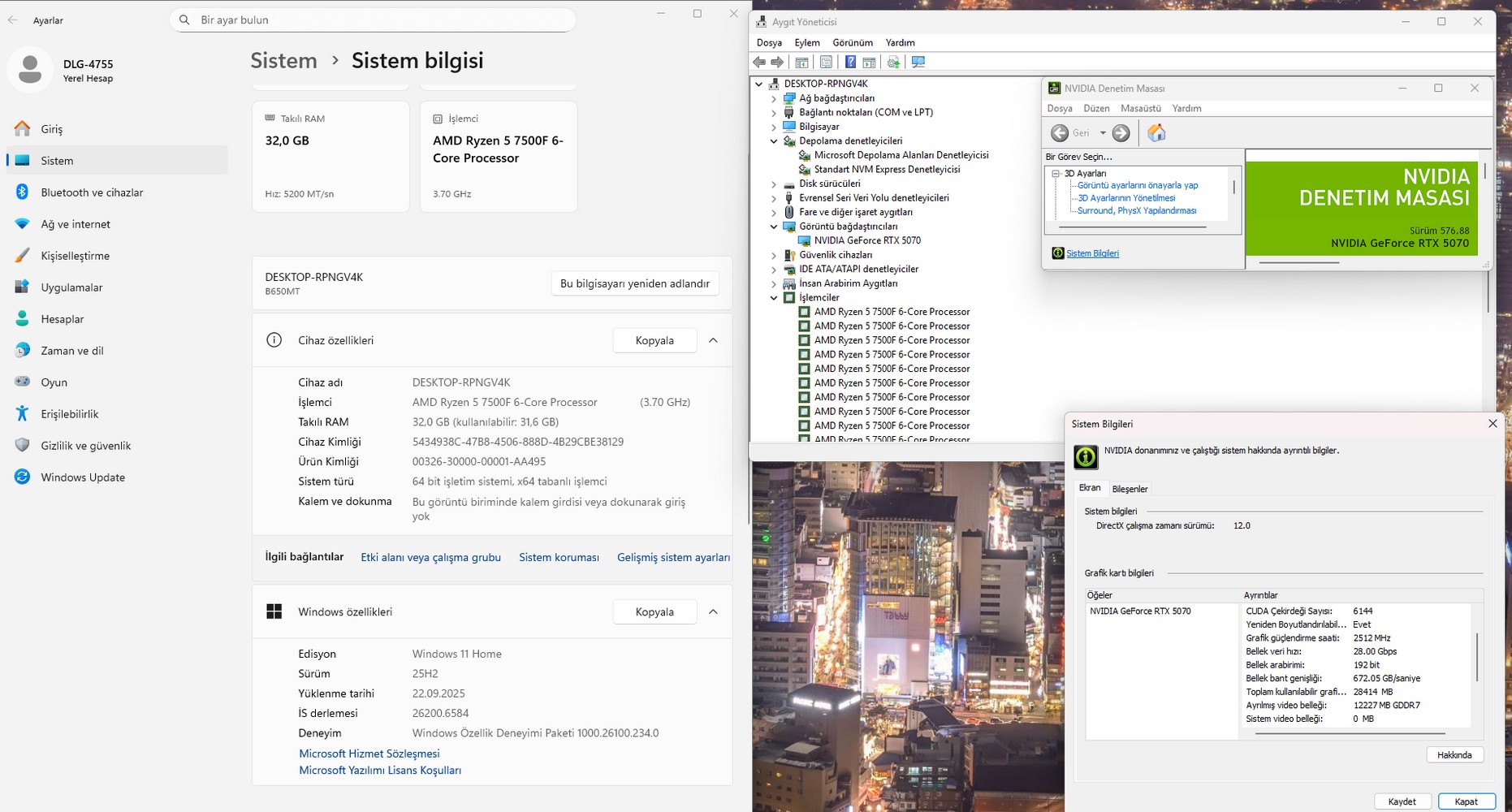 Dolgun Teknoloji 4755 AMD R5-7500F 32GB 1TB RTX5070 12GB W11 OEM Oyuncu Kasası