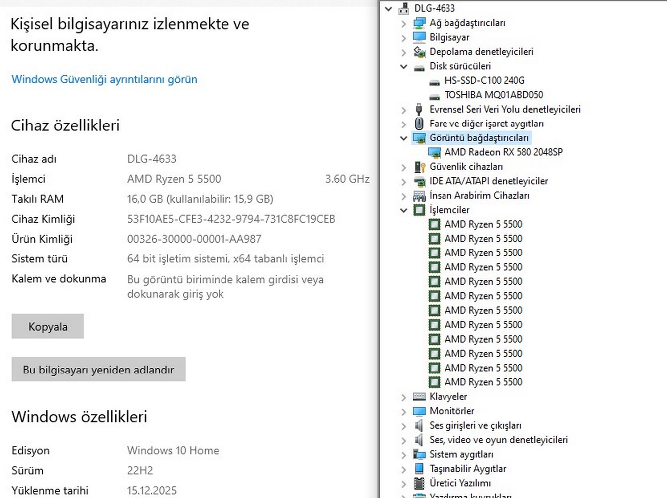 İşlemci: AMD Ryzen 5 5500 6 çekirdek