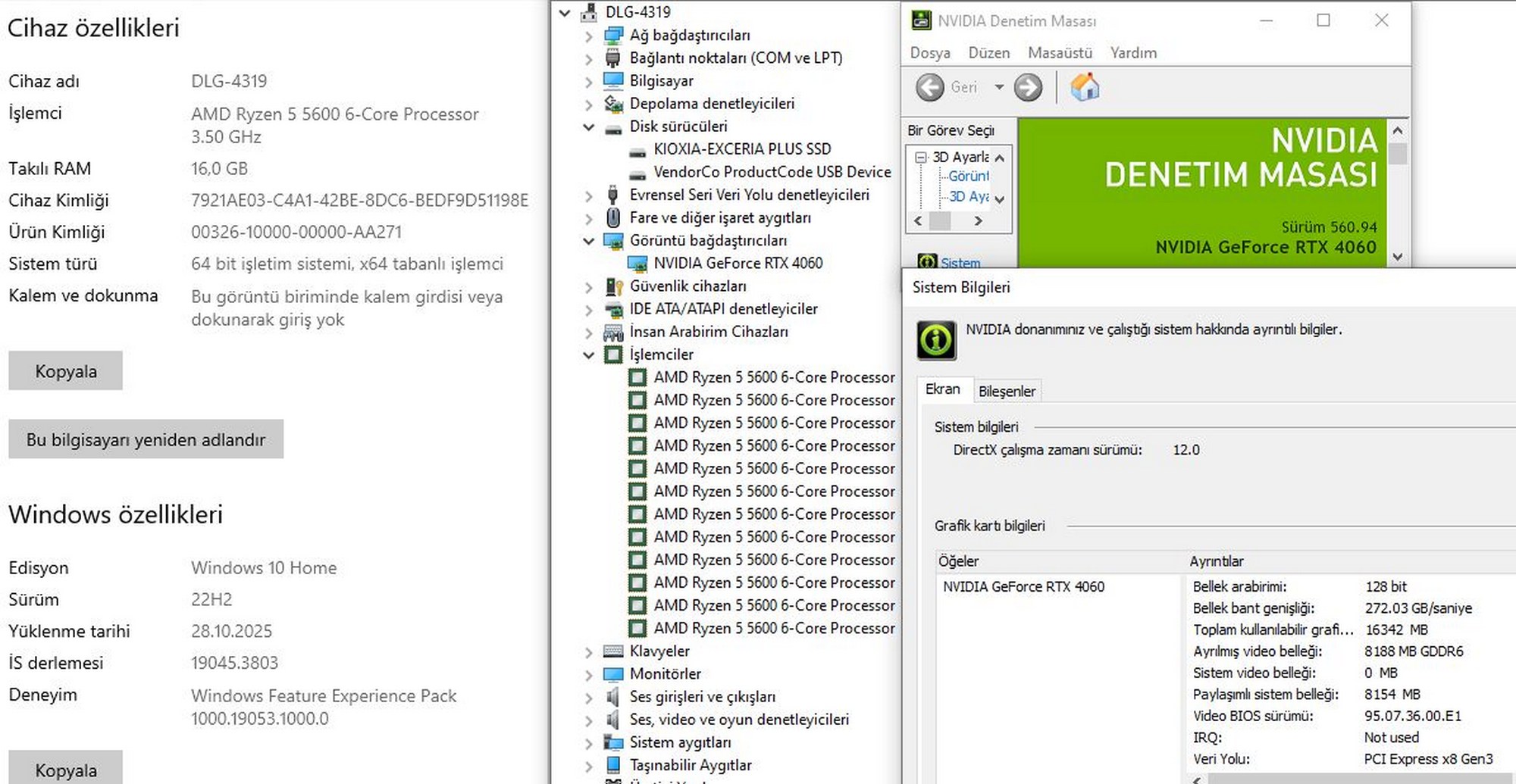Everest Kasa AMD Ryzen 5 5600 16GB RAM 500GB SSD RTX4060 (İKİNCİ EL)