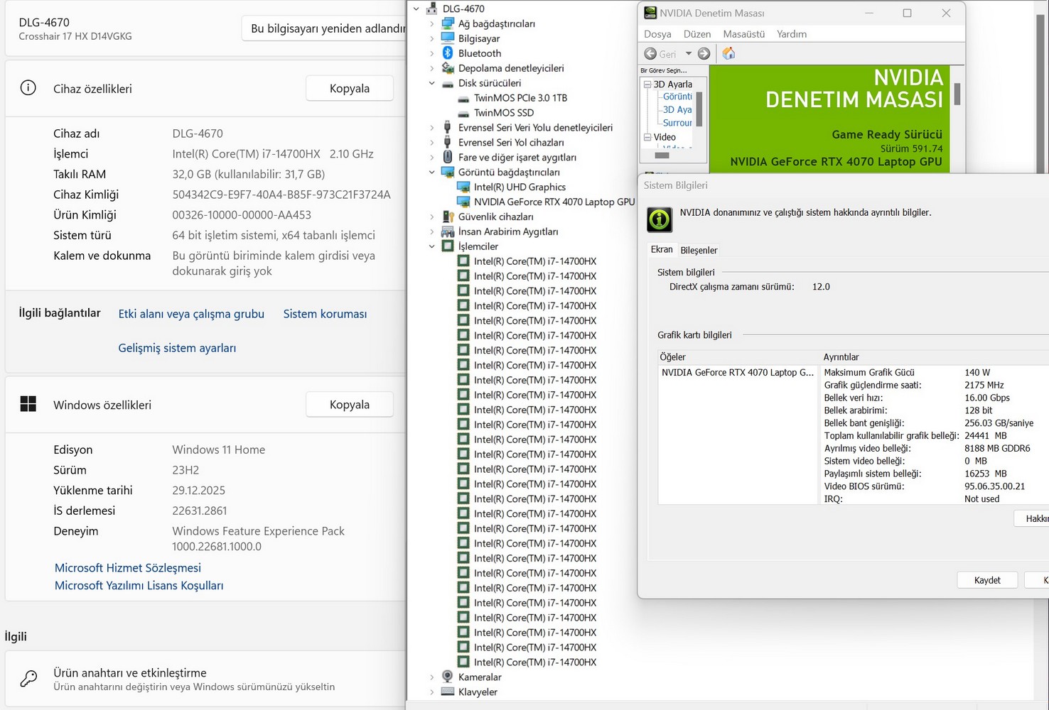 İşlemci: Intel Core i7-14700HX 20 çekirdek