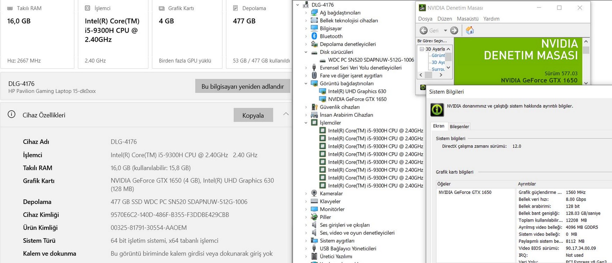 HP Pavilion Gaming 15-DK0006NT Intel Core i5 9300H 16GB 512GB SSD GTX1650 15.6” FHD (KUSURLU İKİNCİ EL)