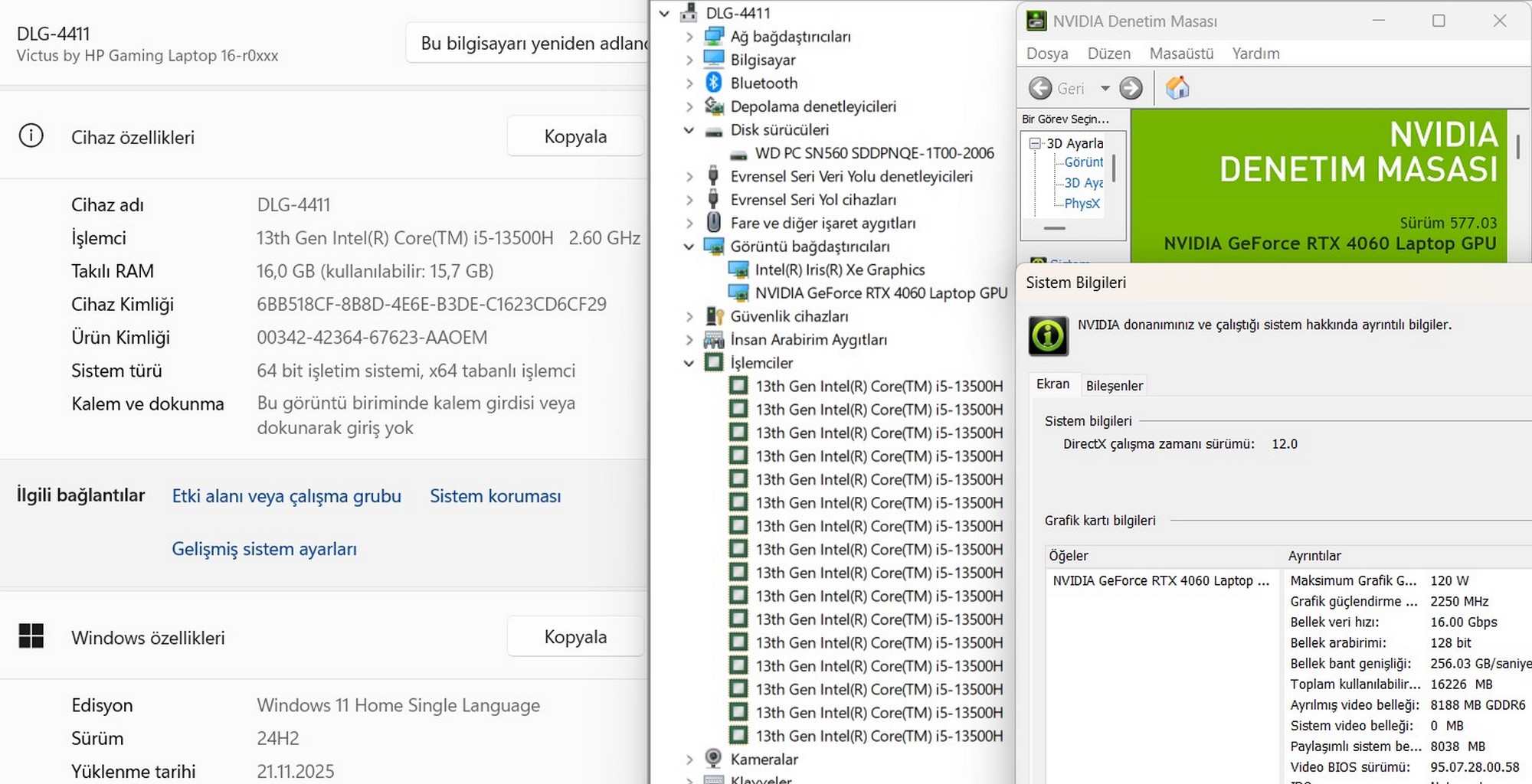 HP Victus 16-R0023NT i5 13500H 16GB RAM 1TB SSD RTX4060 W11 16.1” FHD 7P6L1EA (İKİNCİ EL)