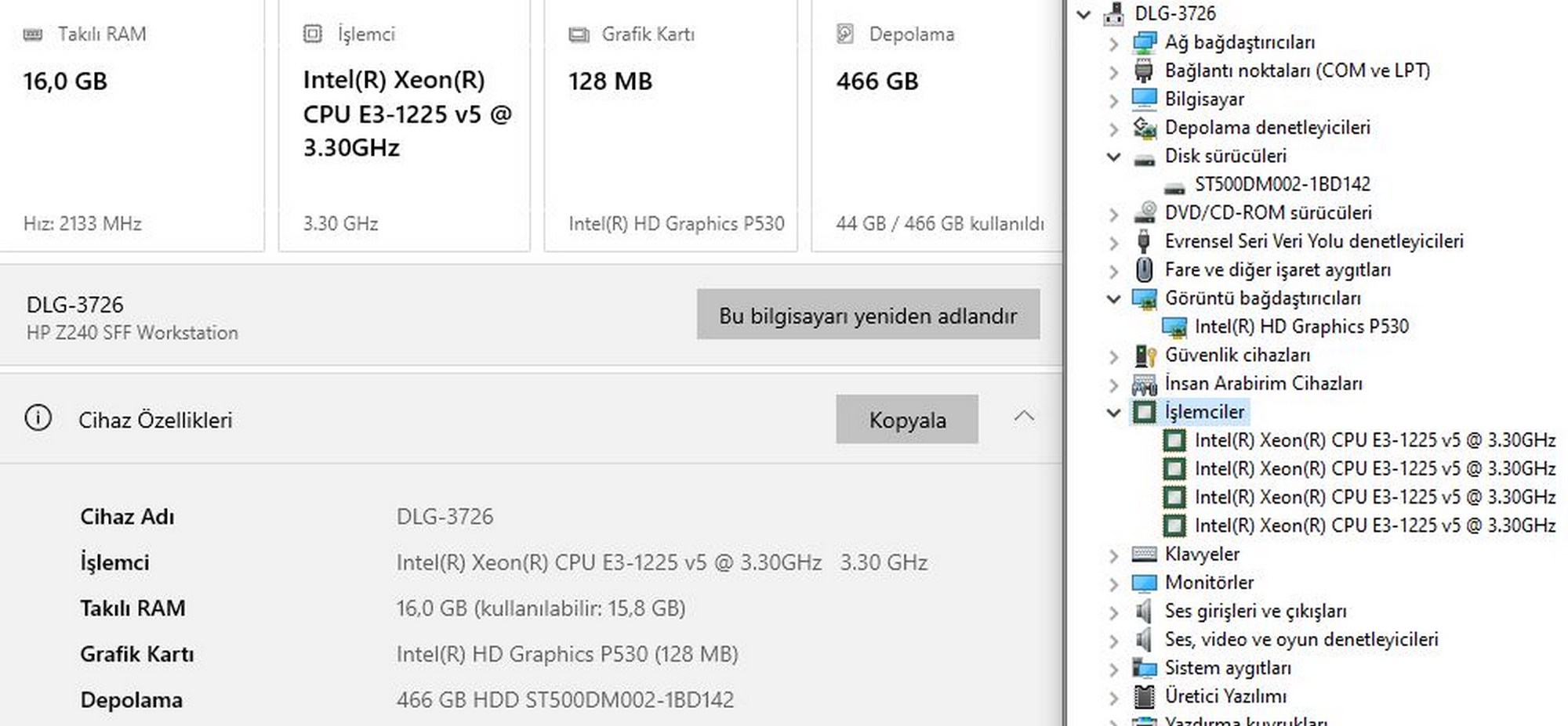 HP Z240 SFF Workstation Intel Xeon E3-1225 v5 16GB RAM 500GB HDD (İKİNCİ EL)