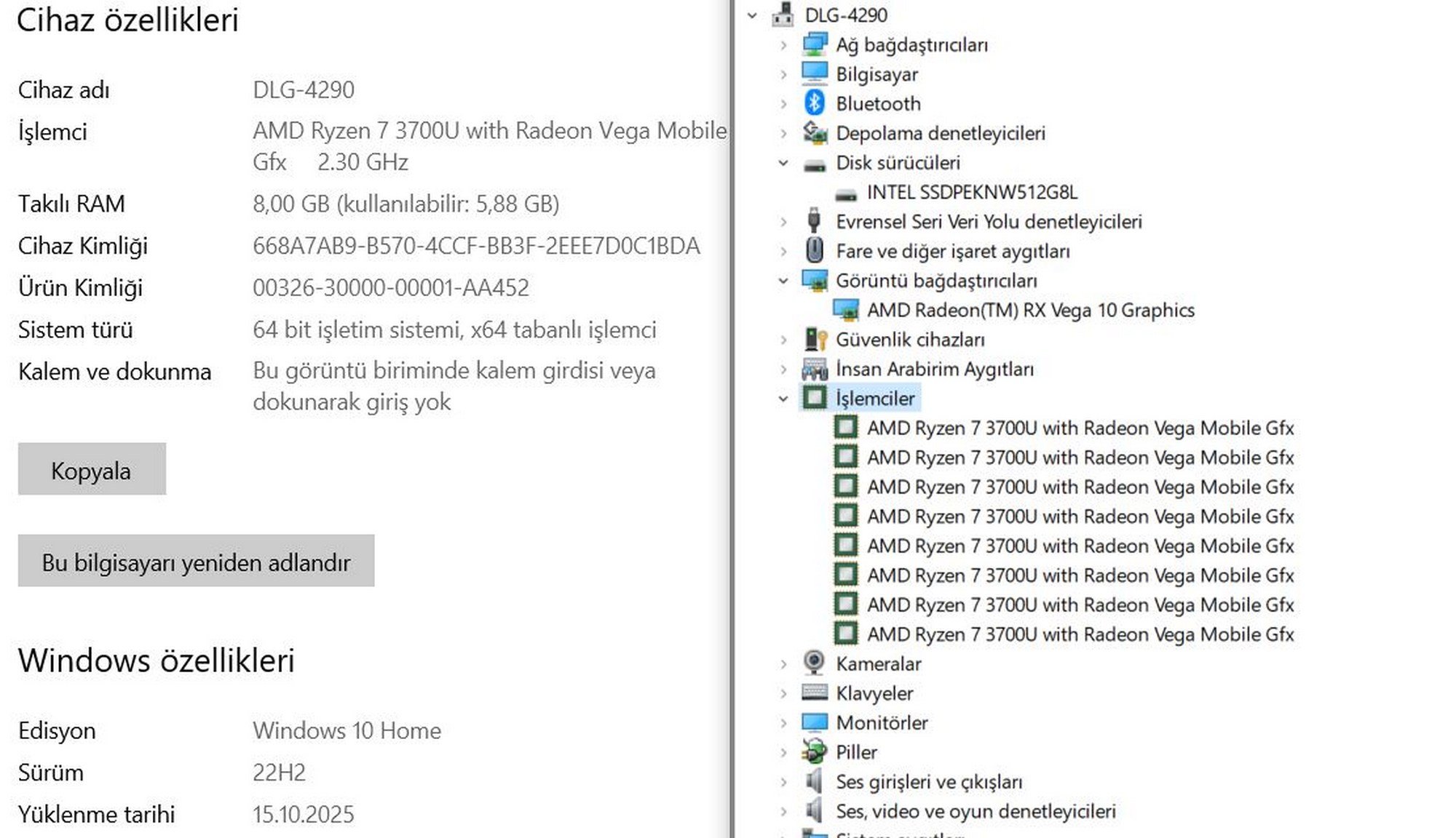 Ekran Kartı AMD Radeon RX Vega 10 Graphics