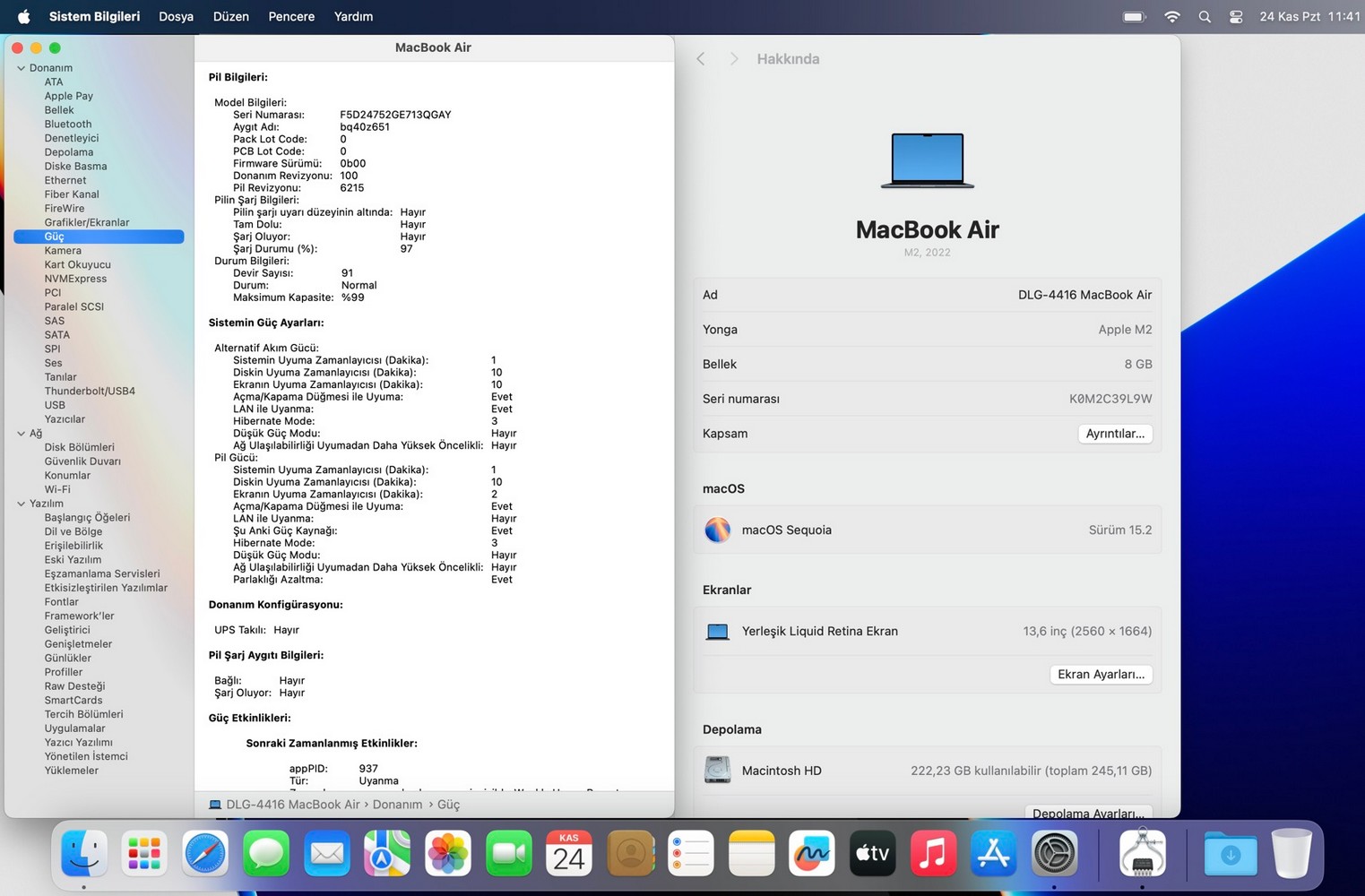 İşlemci: Apple M2 çip 8 çekirdek