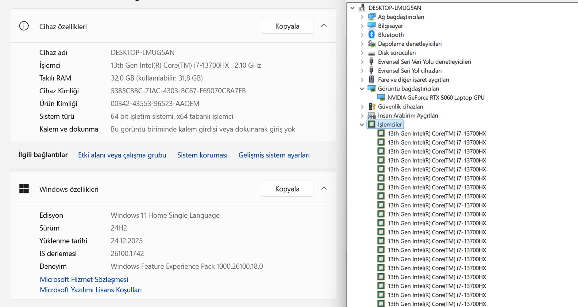 İşlemci: Intel Core i7-13700HX 16 çekirdek
