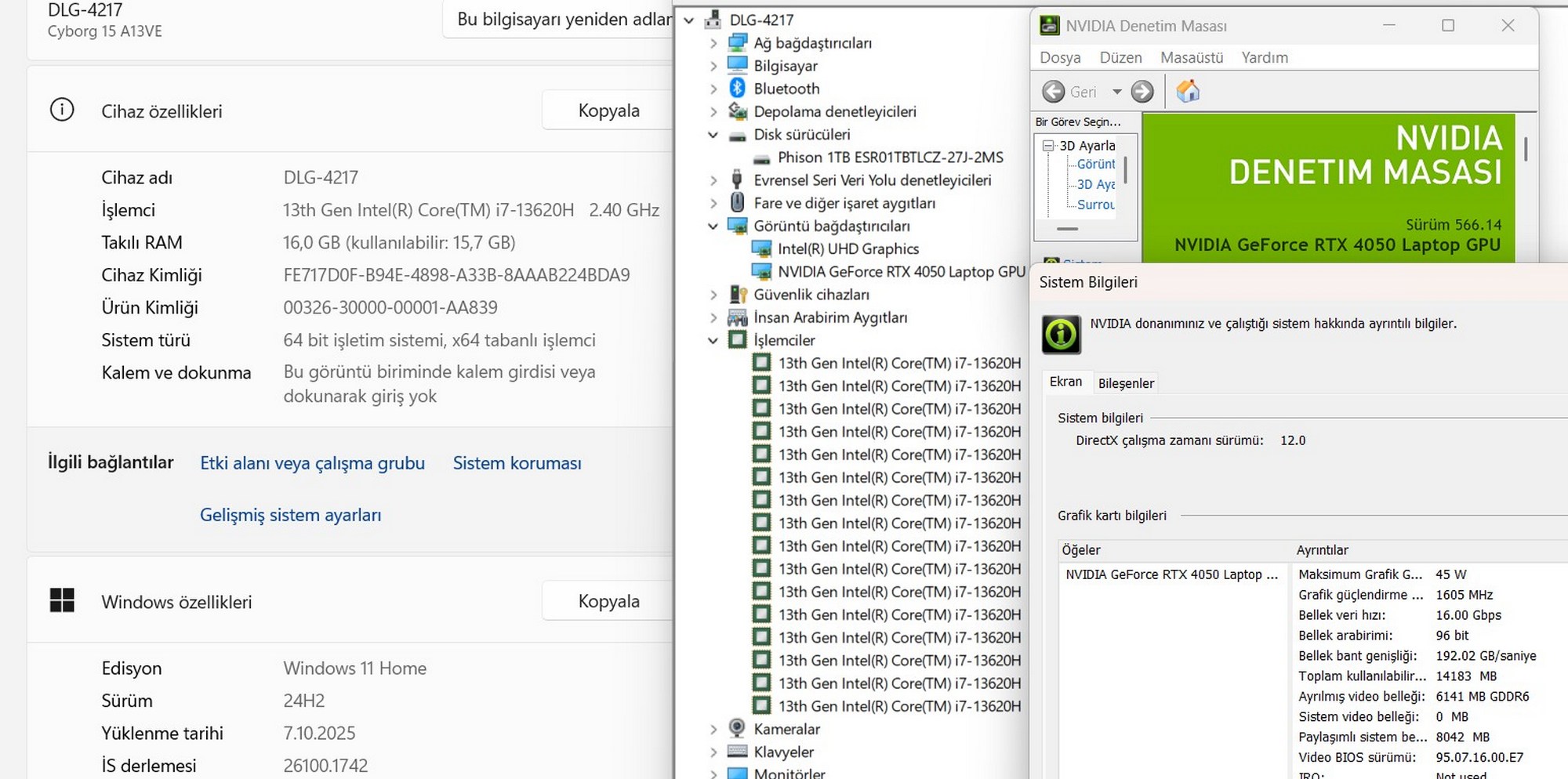 MSI Cyborg 15 A13VE-897XTR Intel Core i7 13620H 16GB 1TB SSD RTX4050 15.6” FHD 144Hz (İKİNCİ EL)