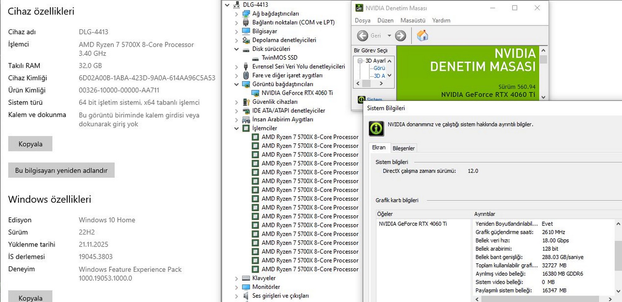 Ekran Kartı: GeForce RTX 4060TI 16GB