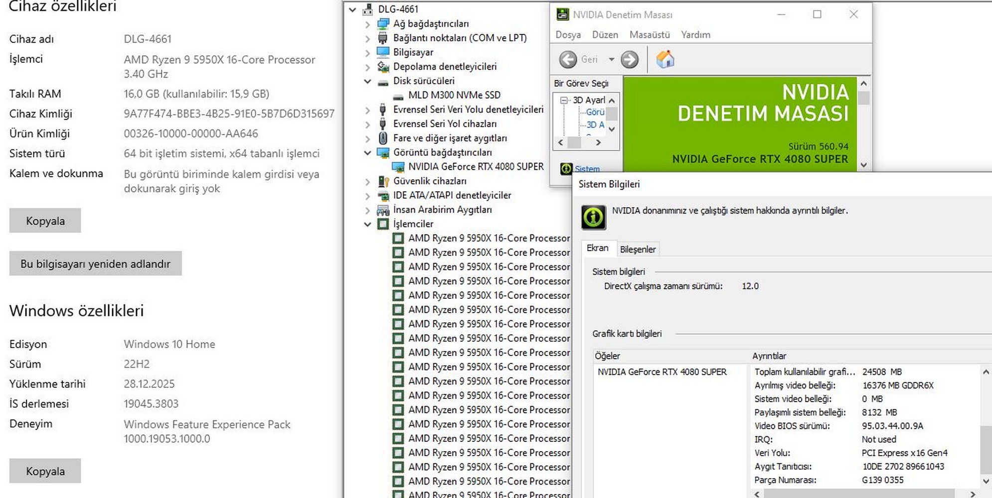 İşlemci: AMD Ryzen 9 5950X 16 çekirdek